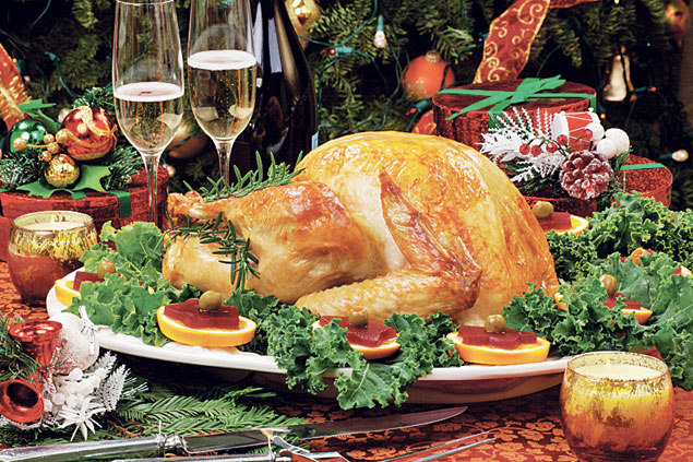 8. Однако пропекшуюся птицу еще рано подавать к столу. Достав ее из духовки, не открывайте фольгу, а потерпите еще минимум 30 – 40 минут. Пусть большая птичка дойдет, пропарится. А разомлевшую, как после хорошей парной, уже можно подавать к праздничному столу.
