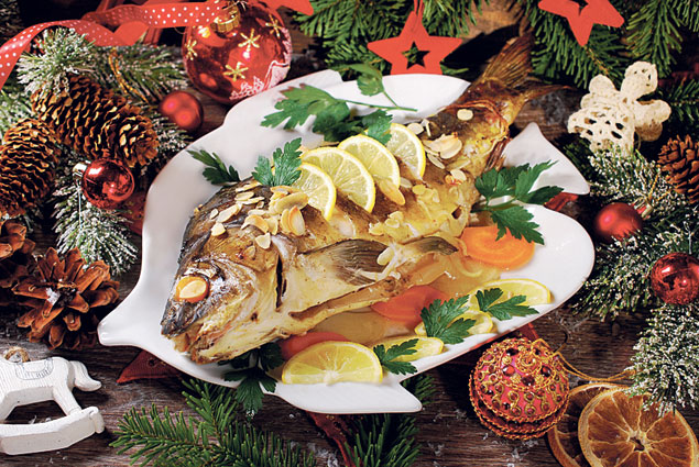 Как ни крути, а новогоднее застолье – это все же ночная трапеза. И далеко не каждый может в это время суток есть жирную баранью ножку или гусика. А вот вполне себе диетический карп – уже другое дело!